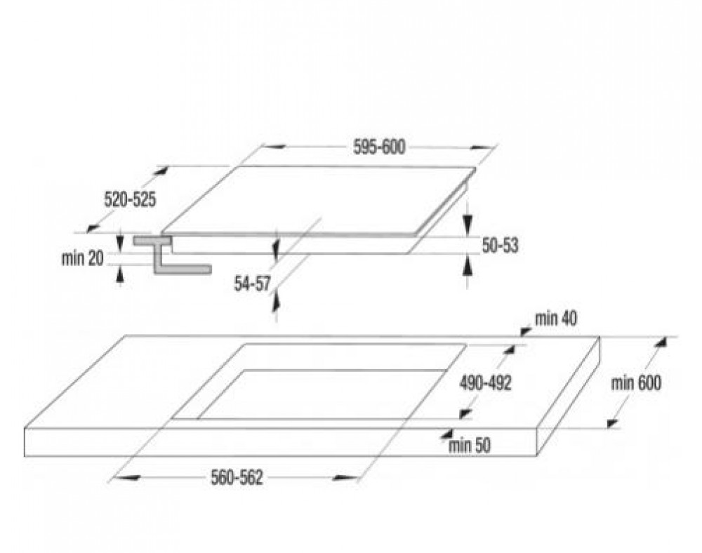 - Beépítési méretek: 56 × 6,2 × 49 cm