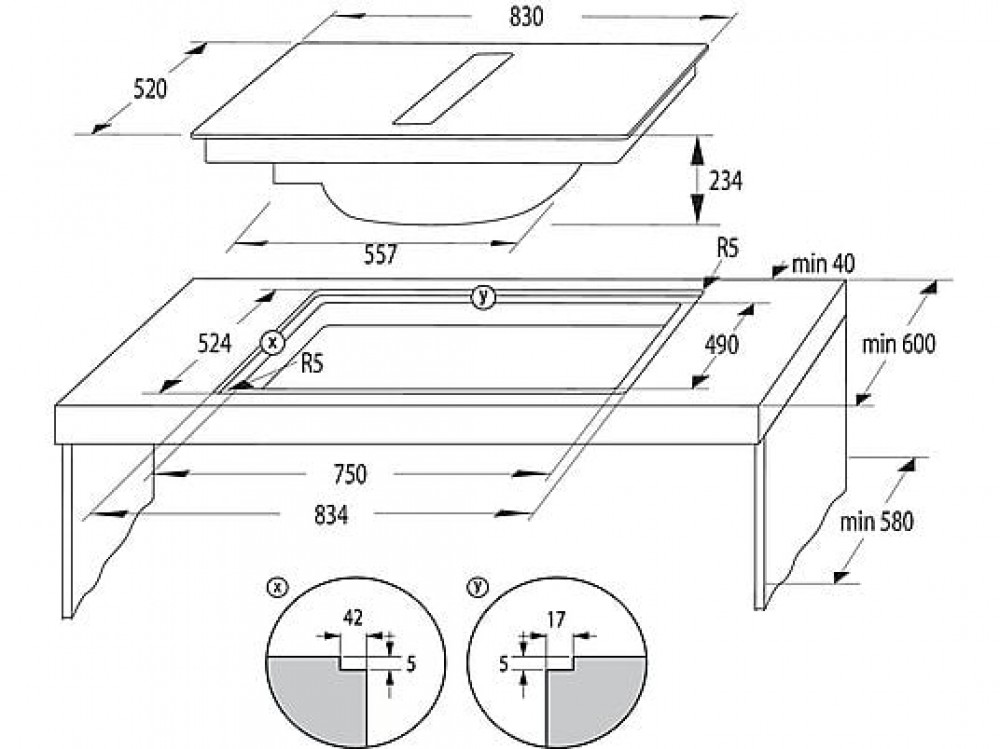 - Típus: Indukciós főzőlap beépített páraelszívóval